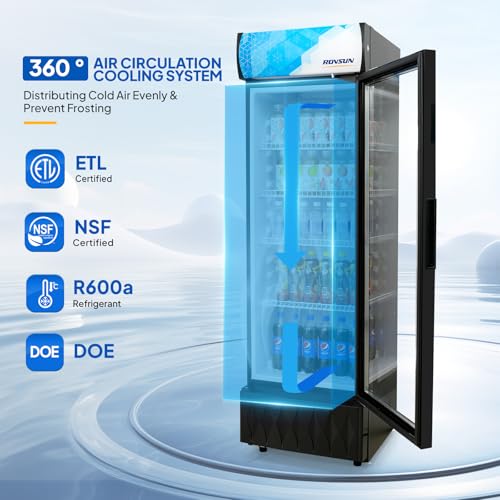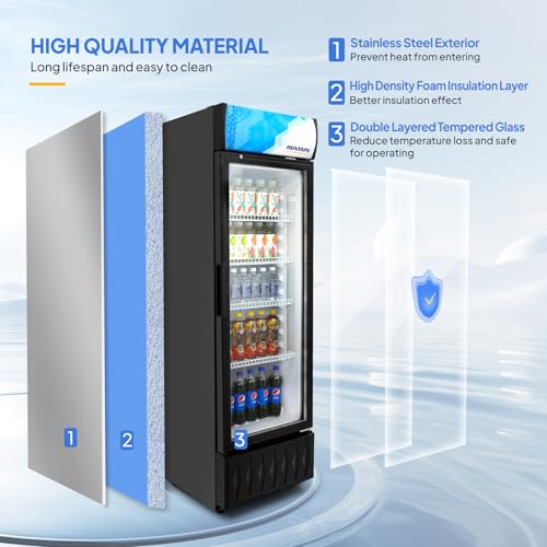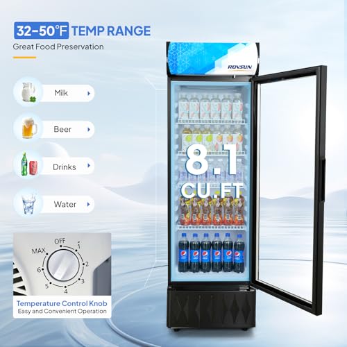 ?Large Capacity?With a generous 8.1 Cu.Ft storage capacity, the display refrigerator provides ample space to store a wide range of beverages, making it perfect for home and commercial use in restaurants, bars, stores, etc. 4 adjustable steel shelves (each could load 48.4 lbs) allow you to efficiently customize your storage based on your specific needs