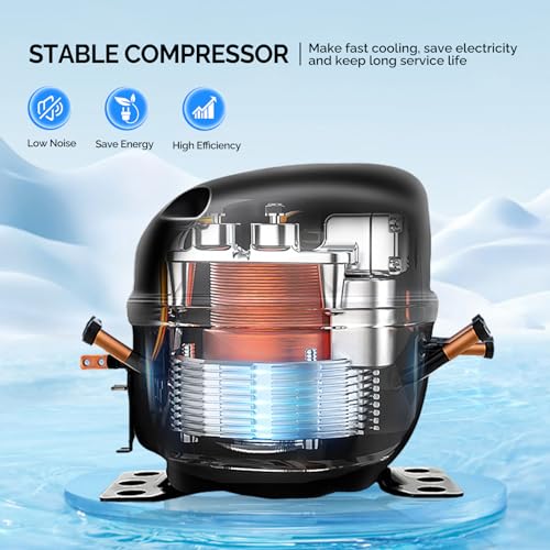 ?Powerful Cooling System?Equipped with a powerful compressor, the beverage cooler features fast cooling, energy conservation and low noise. It maintains a consistently cold temperature to keep your beverages at their optimal drinking temperature. Whether you're storing soda, water, or wine, you can trust this refrigerator to keep them perfectly chilled